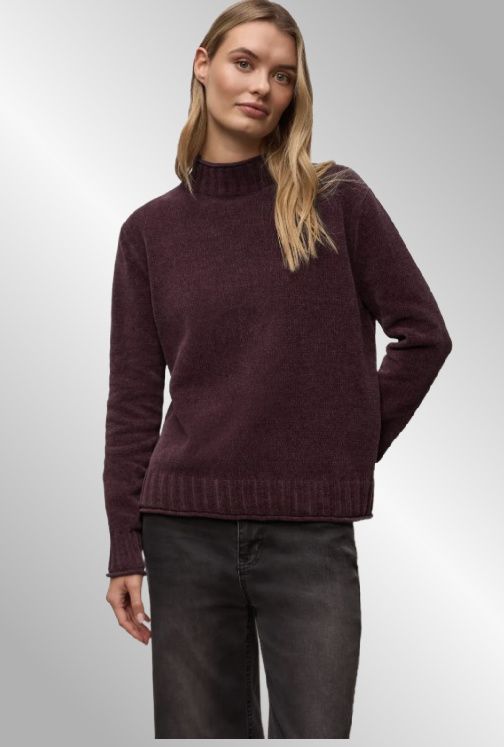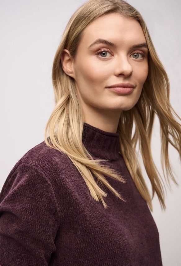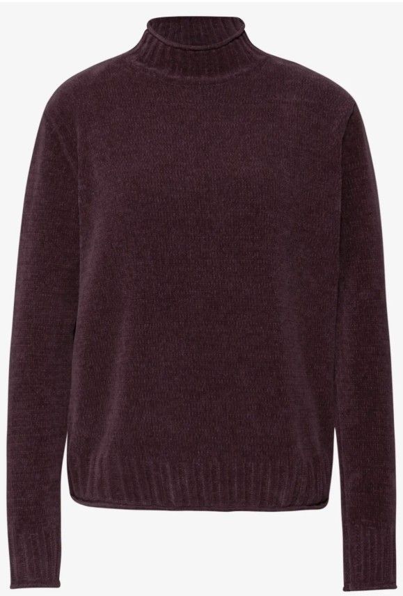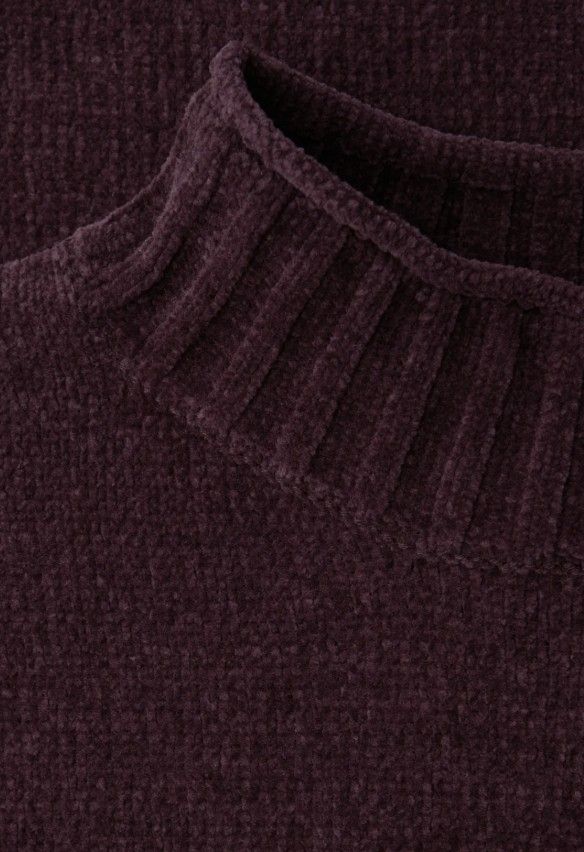 Blød chenille strik, med høj hals og lange ærmer.