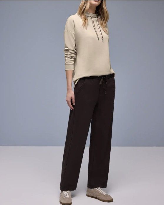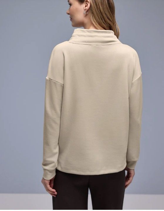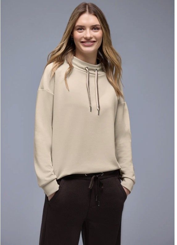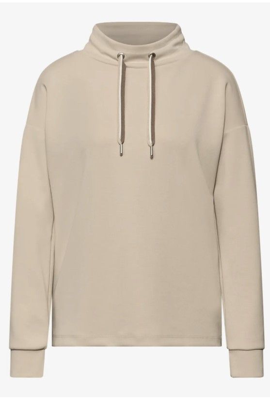 Virkelig behagelig Sweet shirt i silkeagtigt look. Turtle krave med snørre giver et sporty look, mens det behagelige materiale i viskose blanding med ekstra stretch giver en behagelig fornemmelse. Perfekt til et stilfuldt hverdagslook.
