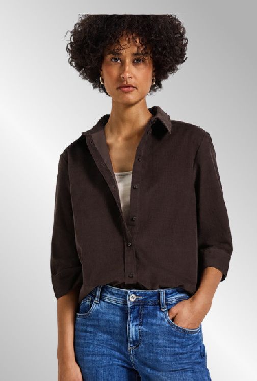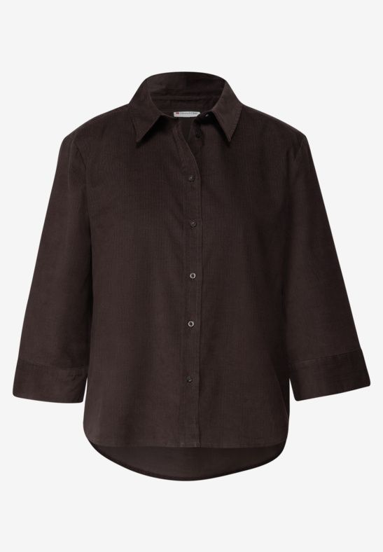 Skjorte i babyfløjl, 3/4 ærme, gennemknappet, klassisk snit. Brug den evt. åbent som en jakke.
