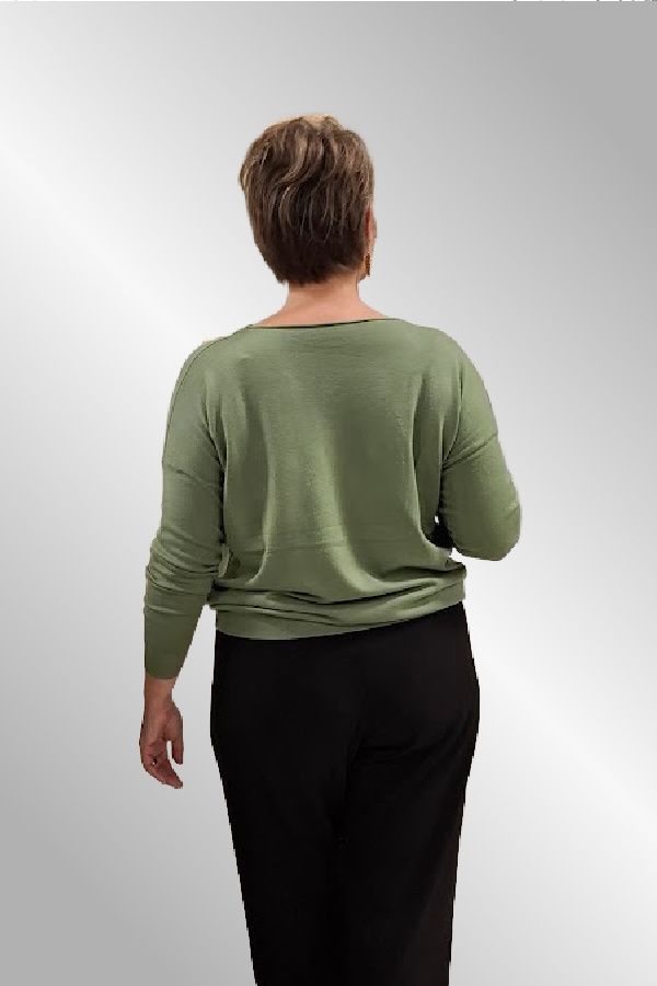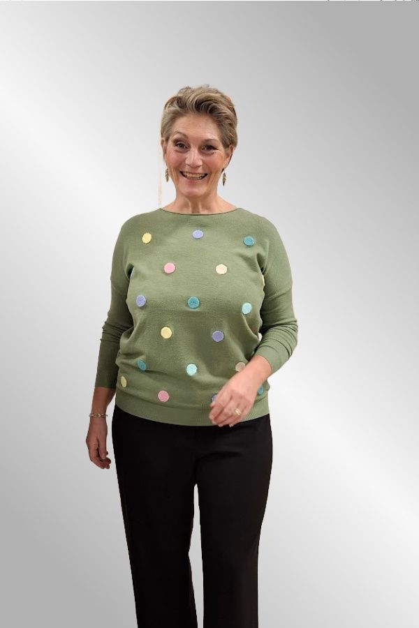 Grøn strikbluse med prikker, C81300