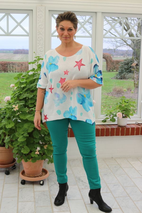 Hvid strik med print, Zafa 21A Hvid strik med print, Zafa 21A Hvid strik med print, Zafa 21A