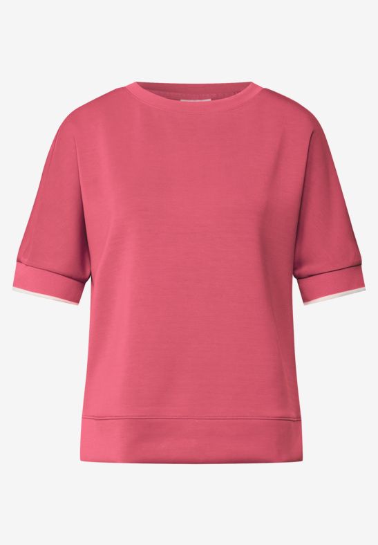 Rund hals og 1/2 ærme med en sød kontrast stribe.