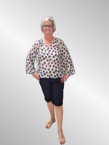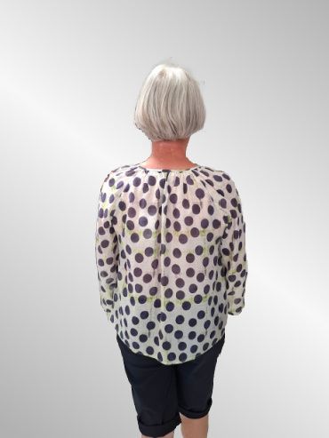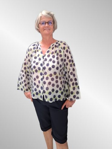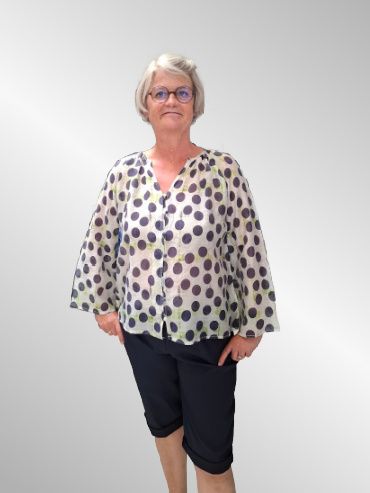 Let skjorte i viskose med lange ærmer. Gennemknappet med v hals. Blusen er transparant og kræver en top under.