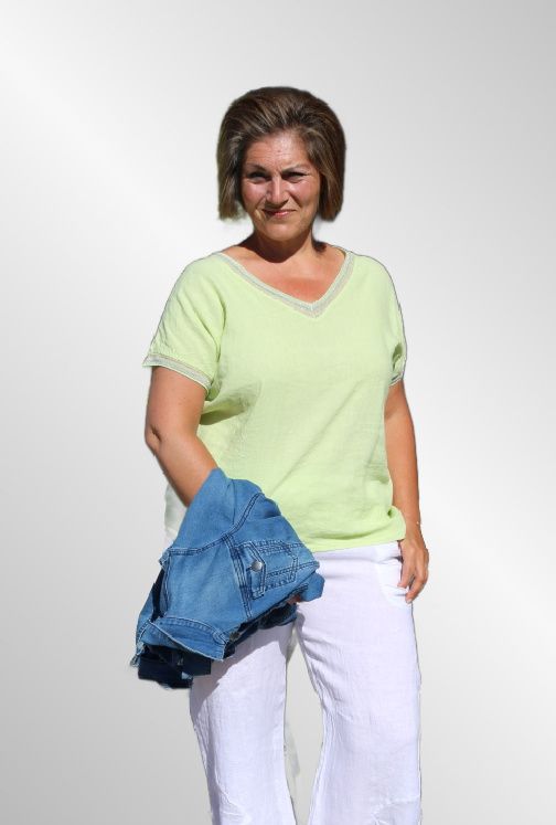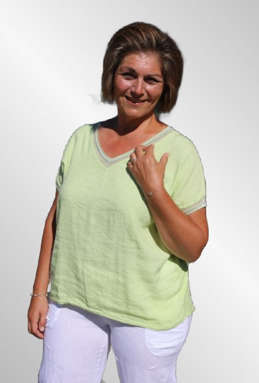 En dejlig rummelig sommerbluse i lime grøn