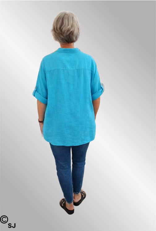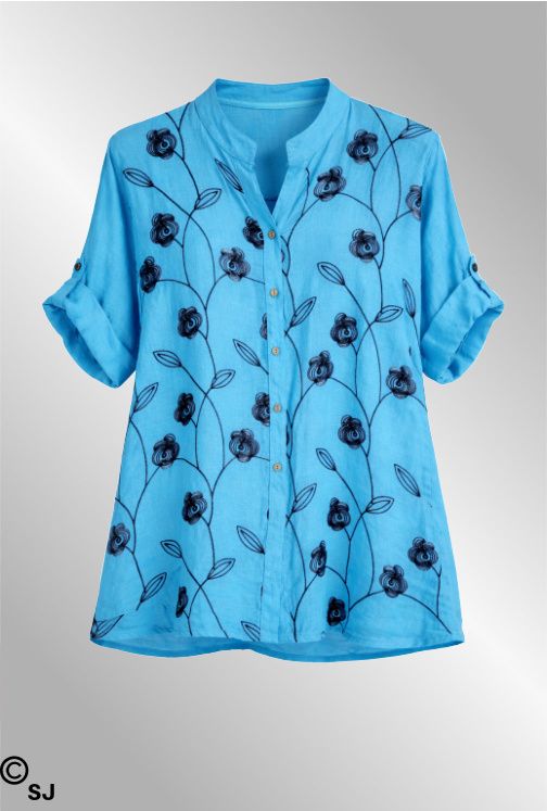 Turkis hørskjorte med broderi, 2065