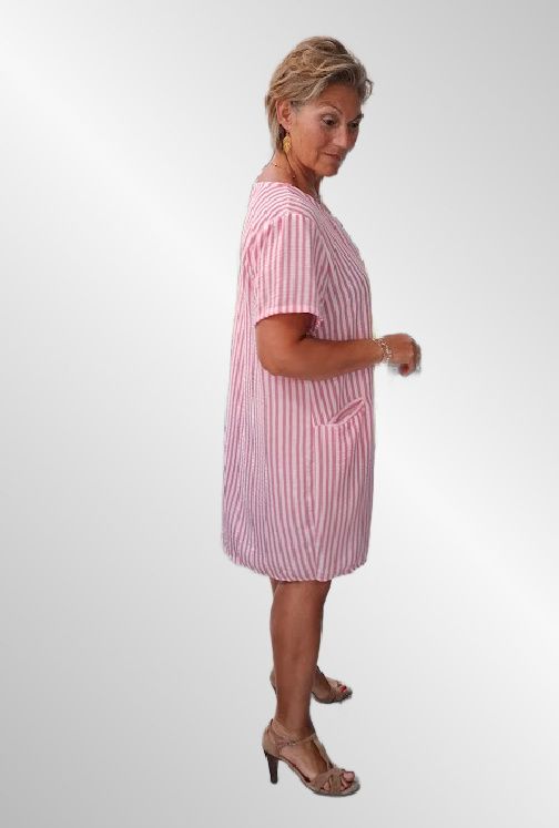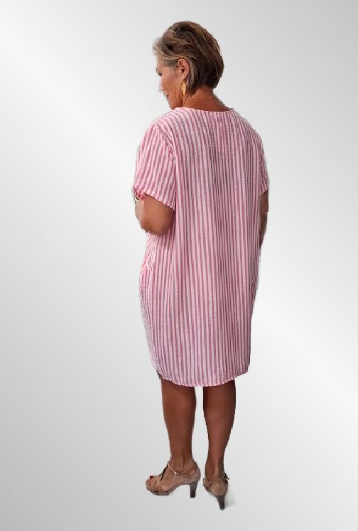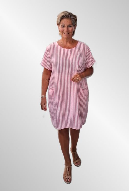 Pink stribet viskose/hør kjole, Rayas