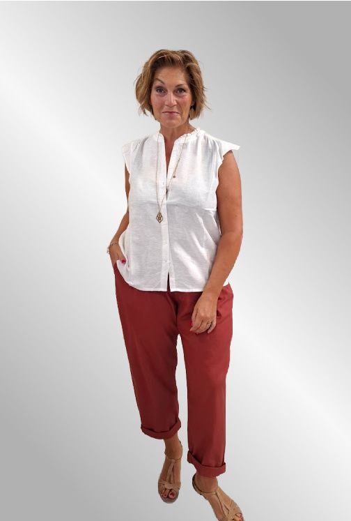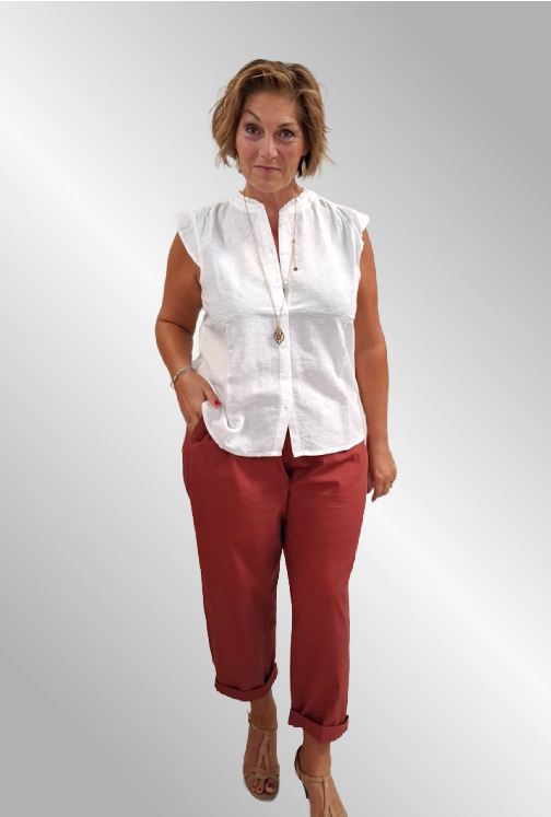Lækker bomuld / hør top med lille stå op flæsekrave og vingeærme.