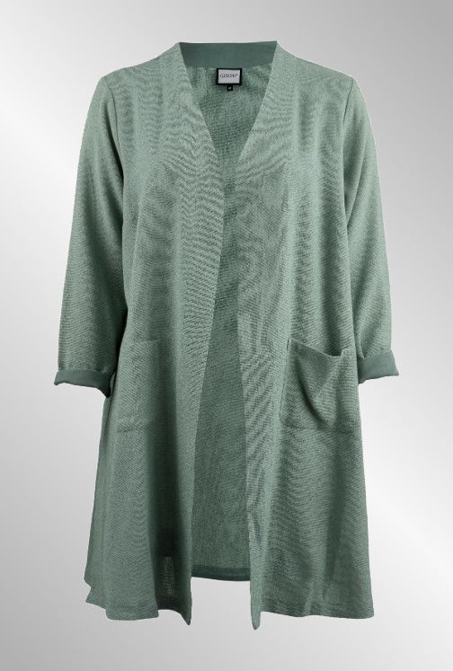 Lang cardigan i canvas look, lommer foran og slids i siderne. Lange ærmer, og beregnet til at stå åben.