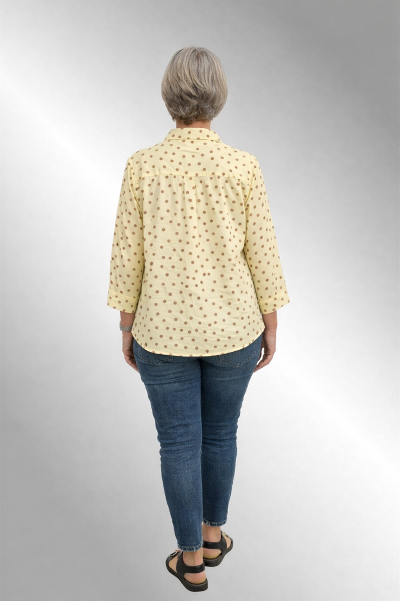Lys gul skjorte med beige polka prikker, Amber, Amace