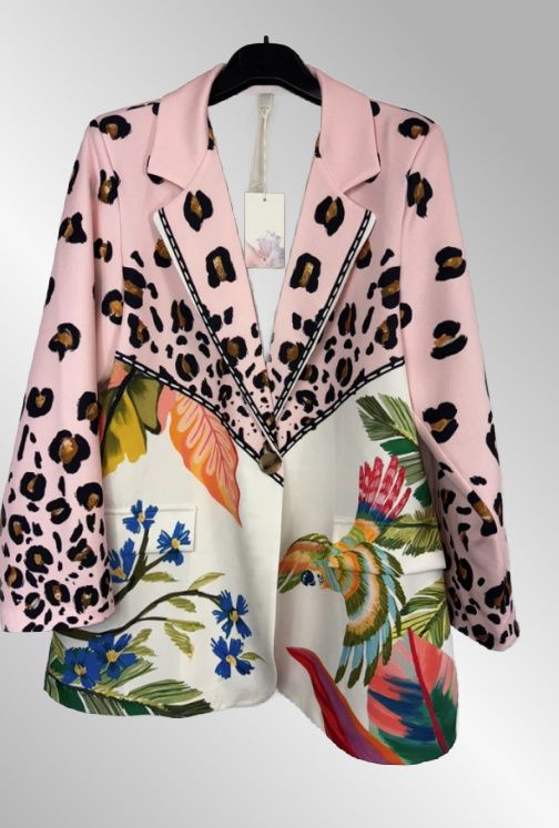 Unik og cool blazer med print, klassisk blazer facon, lukkes med en knap. Foret, blød og behageligt at have på.