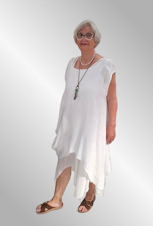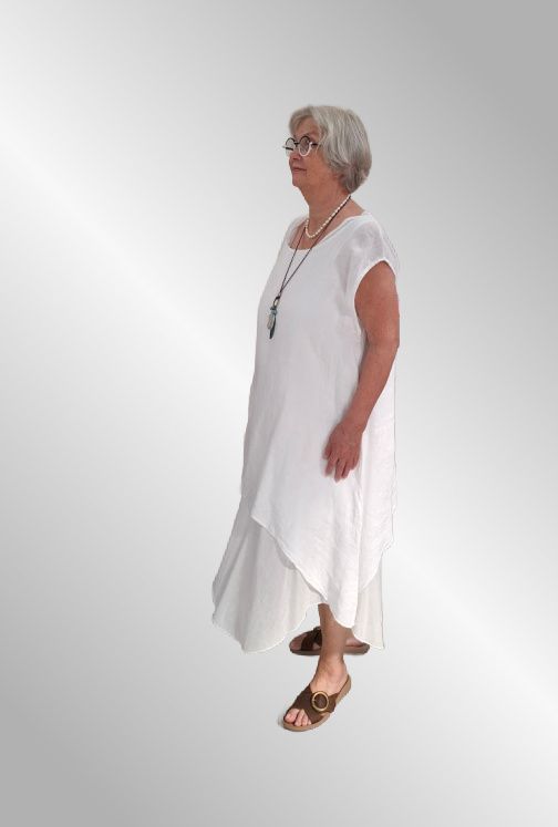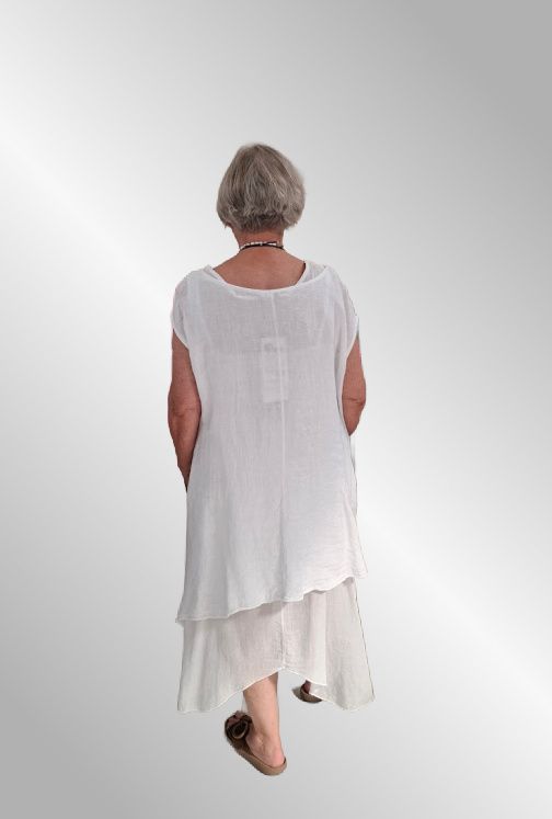 2 dele, hør kjole, Samanta, hvid / hvid