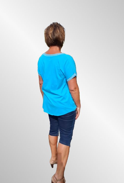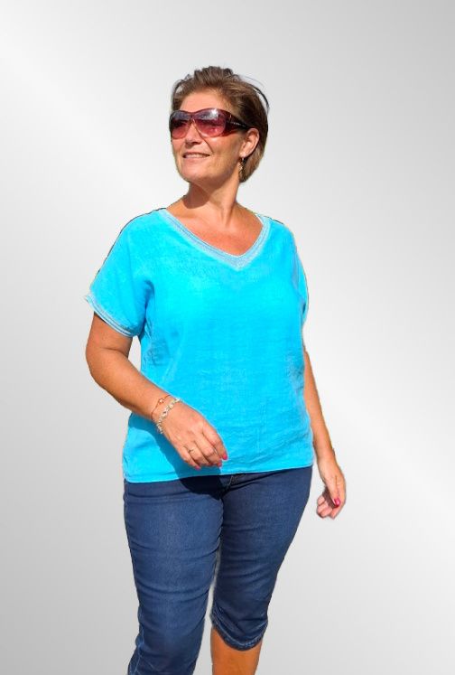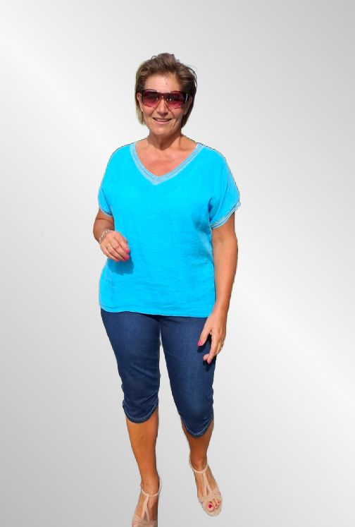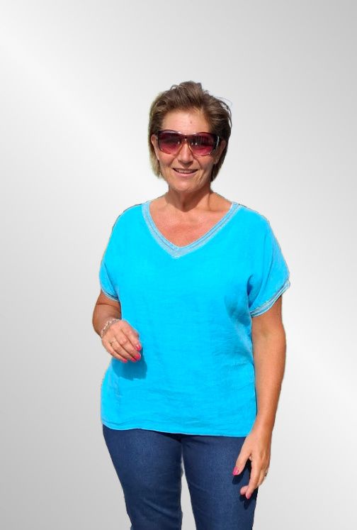 Blusen er i hør på forsiden og i bomuldsjersey bagpå, hvilket gør den er super dejlig at have på.