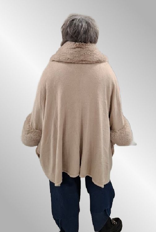 Meget lækker poncho jakke med fake fur kanter. Brug den som jakke i bilen, på indkøb, til fest osv.