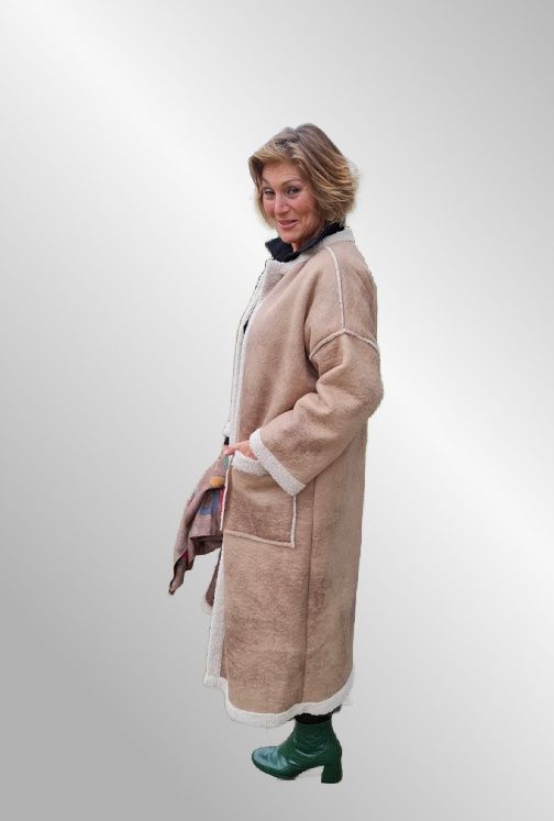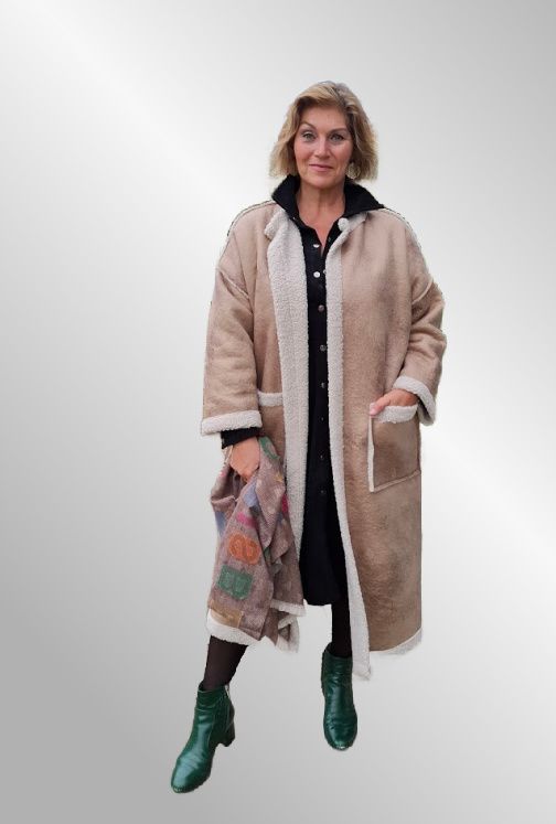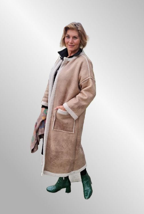 Lang frakke i ruglamslook, beregnet til at stå åbent. Klassisk elegant og med et perfekt næste boheme agtigt udtryk