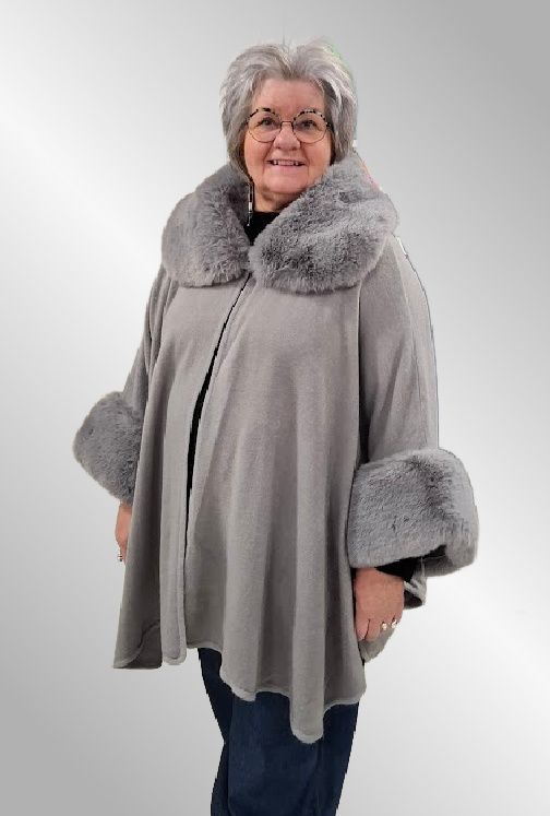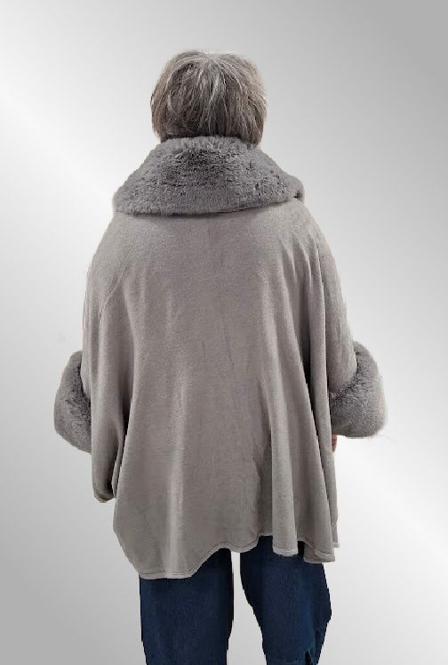 Grå Poncho jakke, fake fur, F40279
