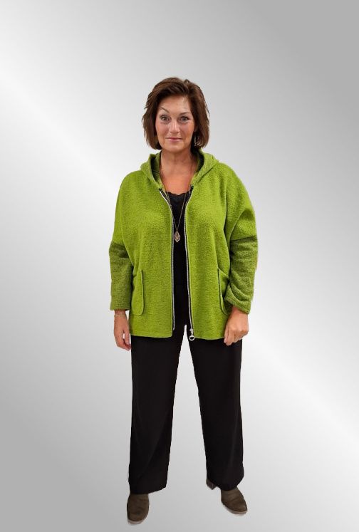 Lime uld fleece jakke med hætte, 90014 Ulit
