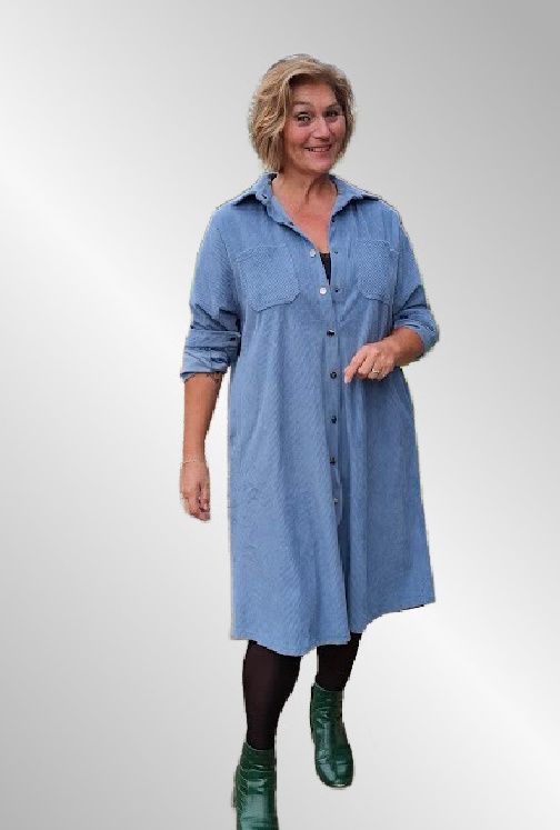 Lækker blød fløjls skjorte kjole gennemknappet. Kan også bruges åben som en let jakke. Den har bryst lommer, og skjulte lommer i siderne.