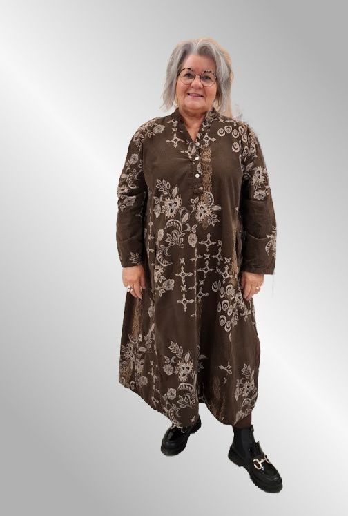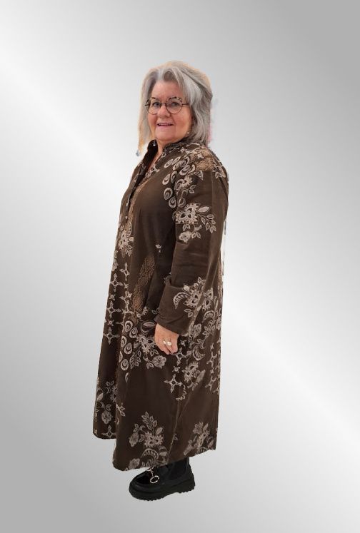 Brun fløjlskjole med print, 12231IKJ