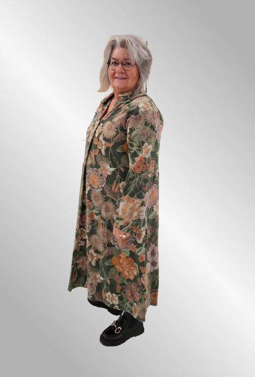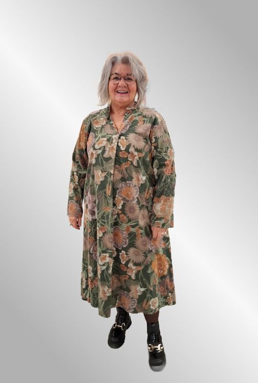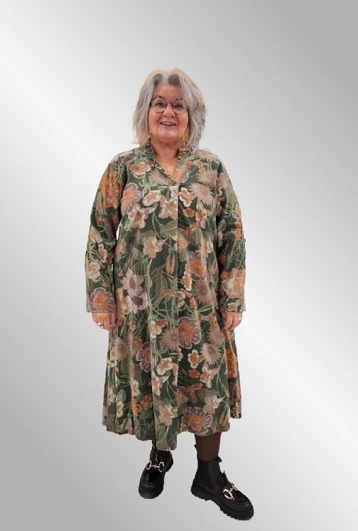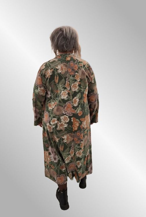 Fantastisk lækker maxi fløjlskjole i smukt print. V udskæring, Kina krave Lange ærmer som kan sættes op i strop. Lommer i siden.
