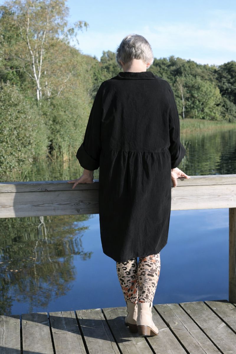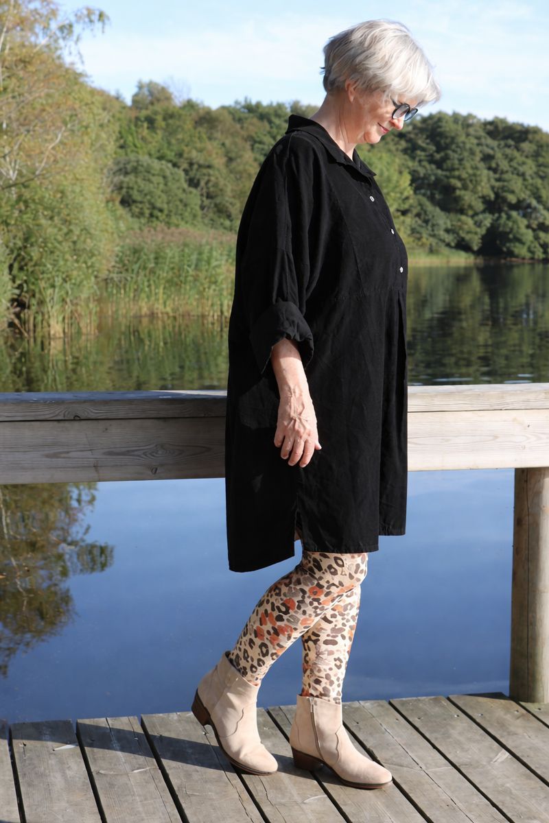 Dejlig blød og behagelig skjorte tunika / kjole i babyfløjl. Stolpelukning og krave.