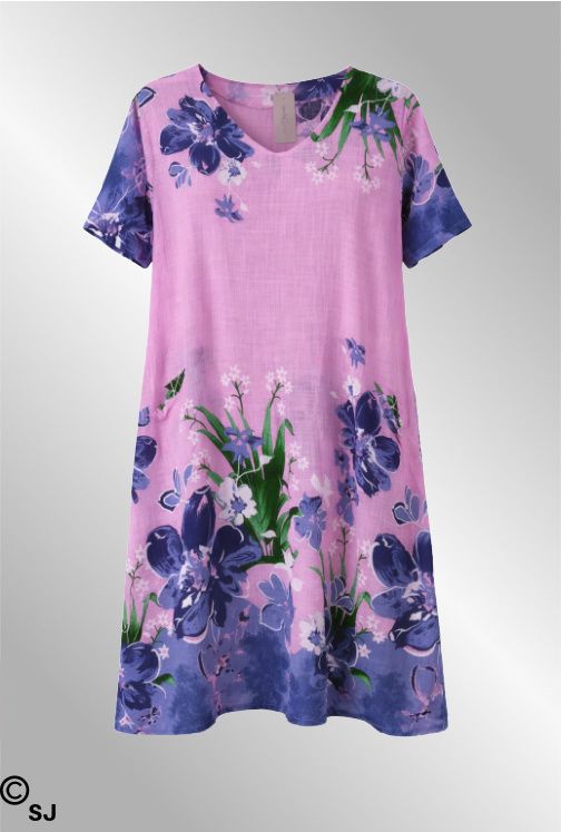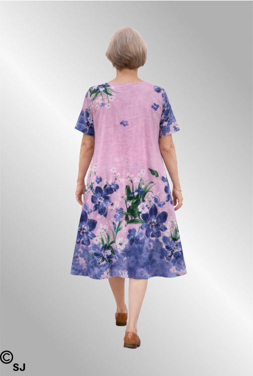 Rosa bomulds kjole med blomster, 3502