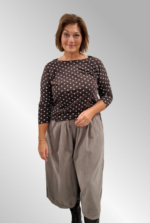 Brun T-Shirt med hvide prikker, bomuld, R9937