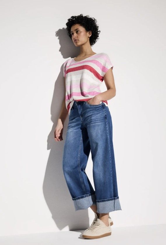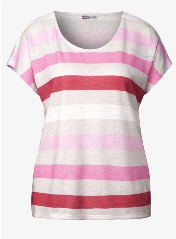 Rosa / råhvid stribet T-Shirt, Street one 322702
