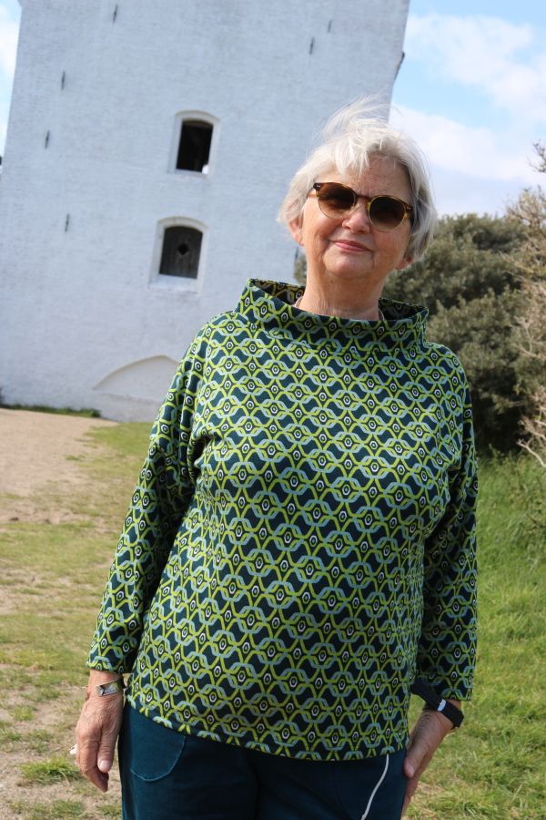 Petrol / Lime bluse med ståkrave, Jabina