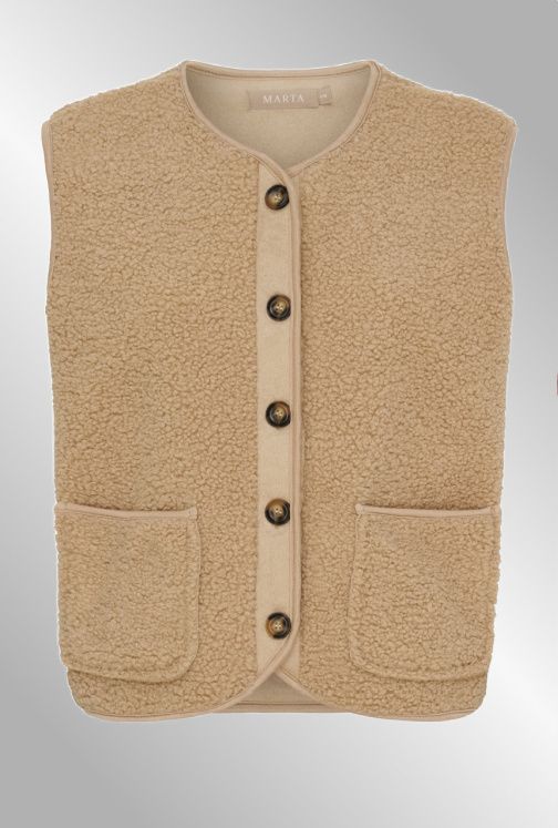 Et helt uundværligt must have i efteråret er denne fine vest i teddy. Gennemknappet og med fliis for.