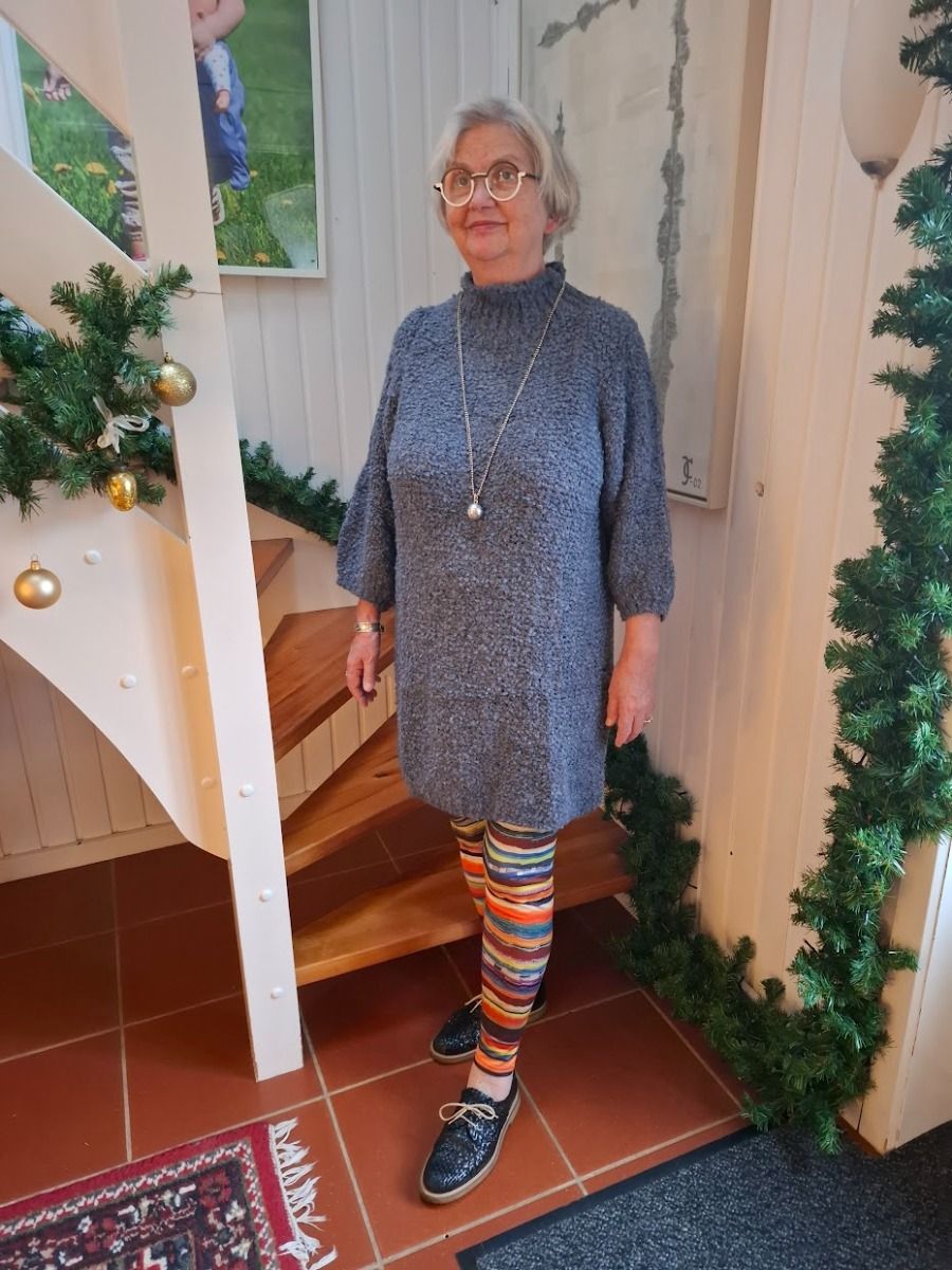 Behagelig, lun strikkjole/ tunika med turtle neck og lange ærmer.
