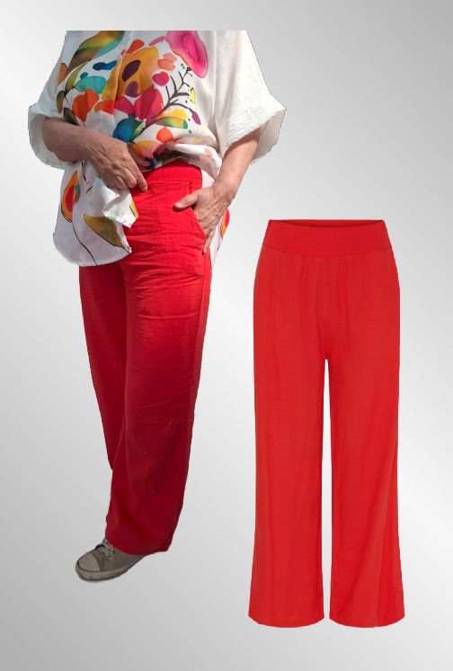 Let og lækker sommerbuks fra Marta, bred rib og elastik i taljen. Lommer i siden, Lige ben.