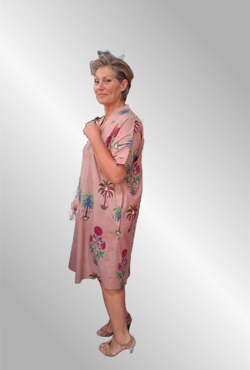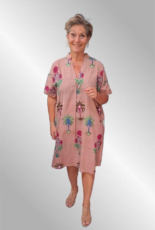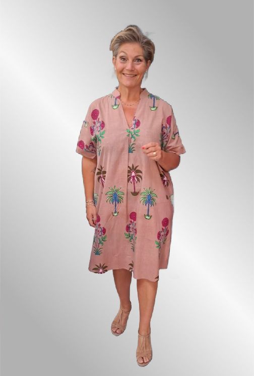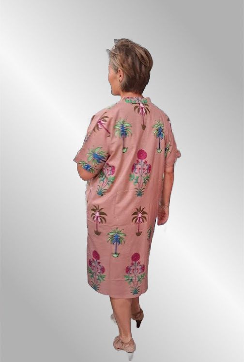 Super behagelig bomuldskjole i utroligt smukt print. Kort ærme og V hals. Lommer i siden.