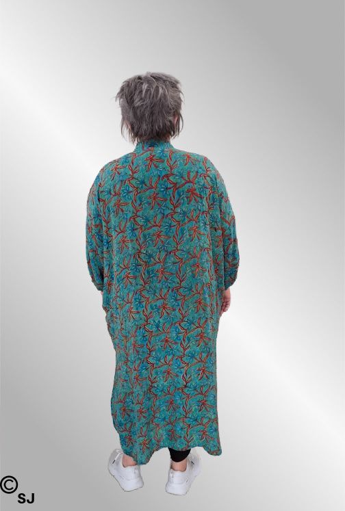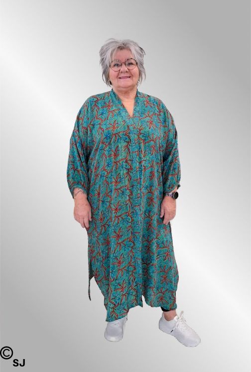 Grøn / blå silke skjortekjole / kaftan, Kort Relove, Unika 762