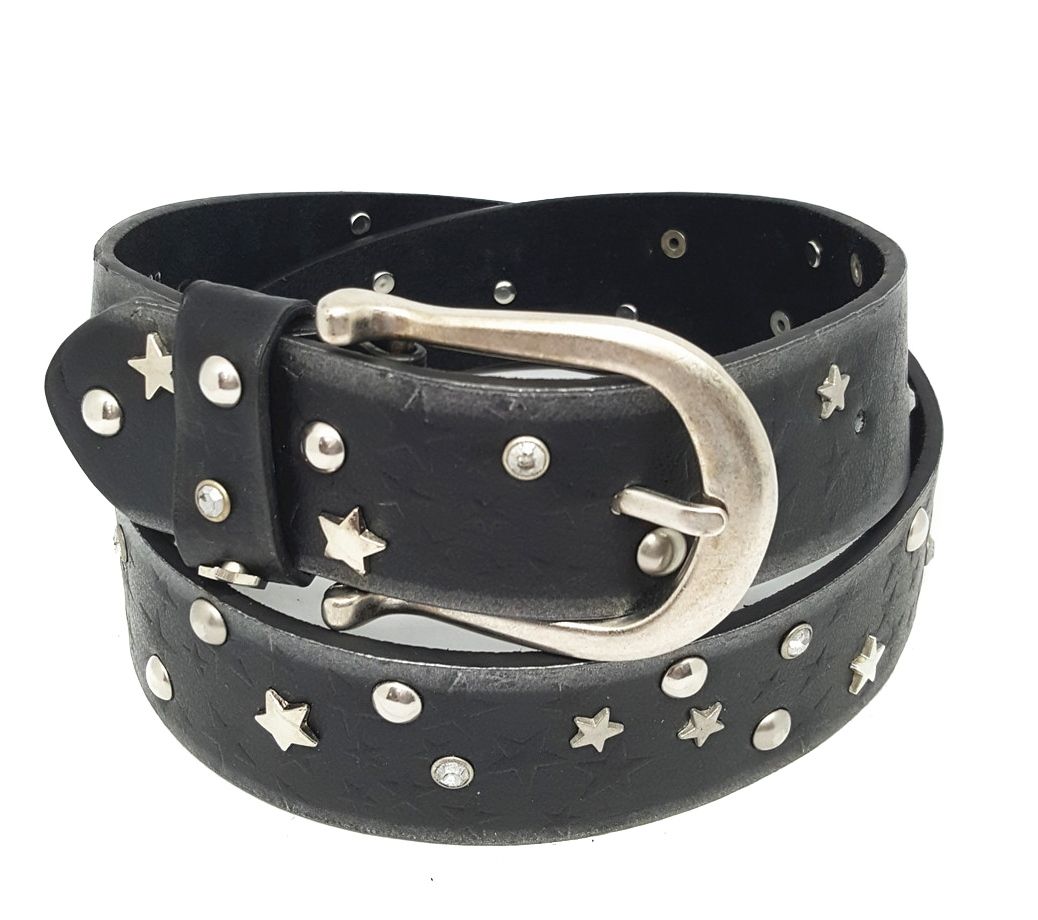 Flot bredt sort læderbælte ned stjerner og nitter.