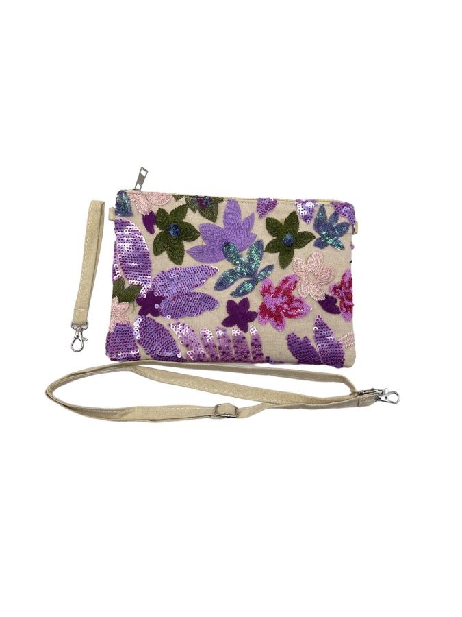 Taske med blomster og palietter, lilla BG-738-3 Taske med blomster og palietter, lilla BG-738-3 Taske med blomster og palietter, lilla BG-738-3
