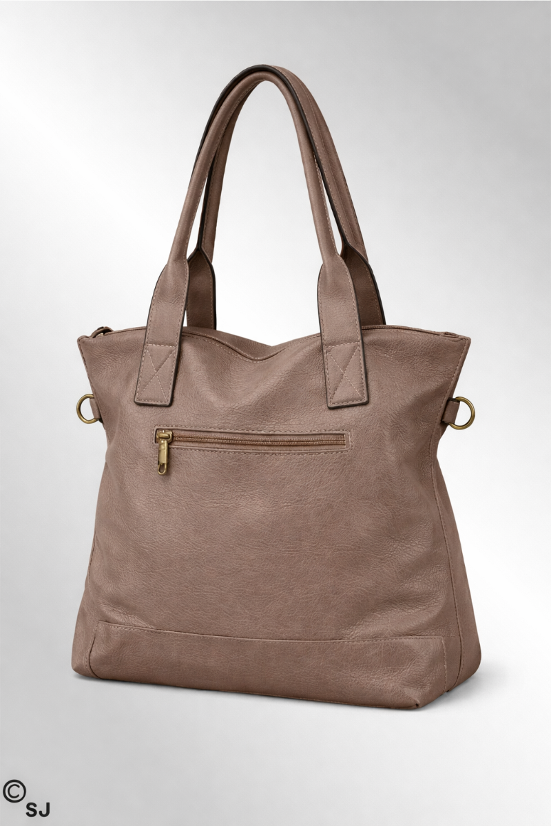 Lækker rummelig taske med flere rum indvendig heraf 2 med lynlås, Ekstra lang skulder rem medfølger. Lynlås lomme udvendig på bagsiden.