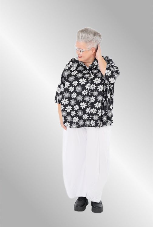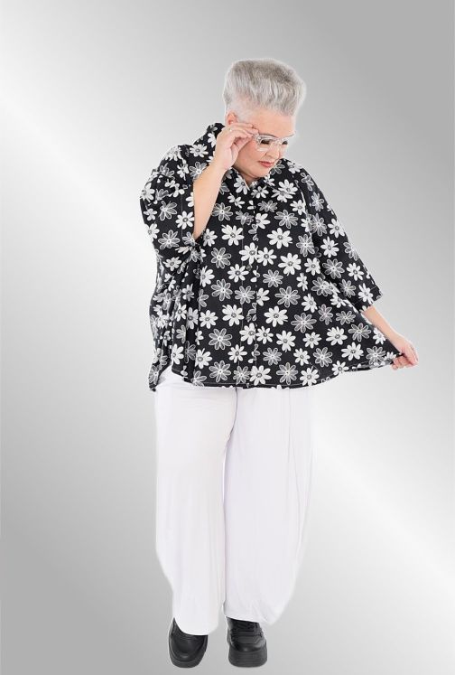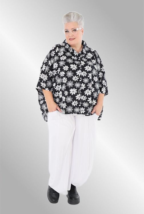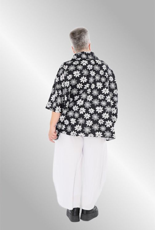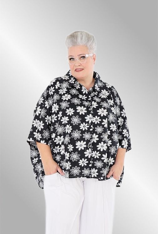 Fantastisk sommer skjorte jakke i smukt sort / hvid print. Knæk ærme , skjorte krave, rundet i nederste kant, gennemknappet. Brug den evt åbent som en jakke over f.eks en sort kjole.