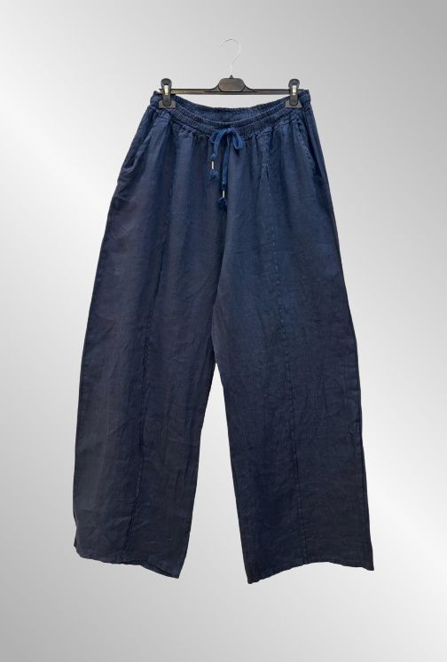 Hørbukser med brede ben. Elastik i taljen og med snor i. Der er lommer i siderne. En rigtig lækker buks at have på.