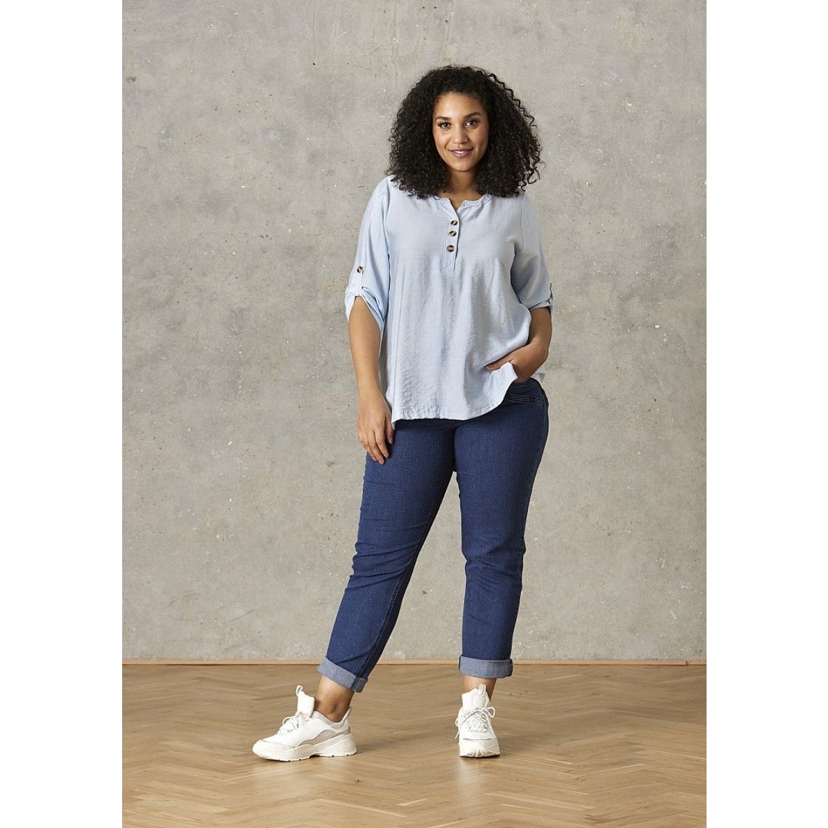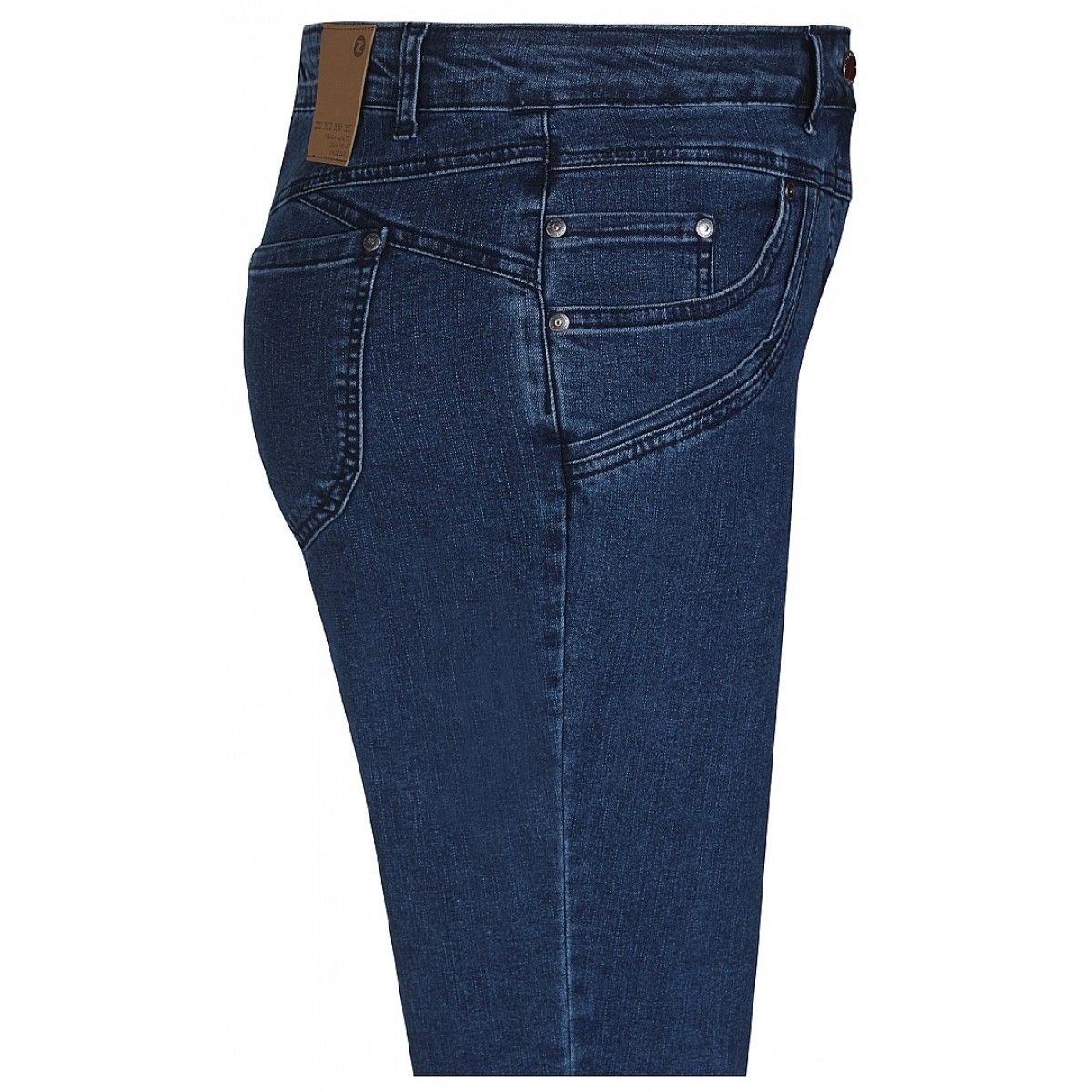 Klassisk blå denim pants med super stretch, regulerbar elastik i taljen samt bæltestropper. Salsa modellen sidder tæt på hoften og er med alm. benbredde. Buksen lukkes med knap og lynlås. 5 lommer.