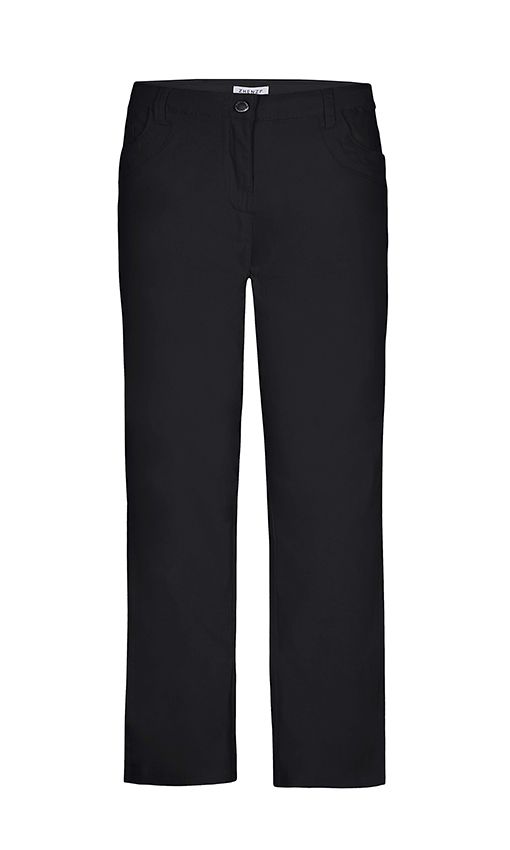 Et par gode klassiske sorte bukser i Step normal fit modellen, der sidder tæt på hoften og masser af stretch. Indvendig elastik og bæltestropper. Lukkes med knap og lynlås. 5 lommer.