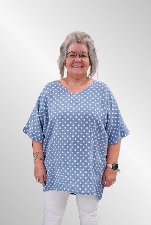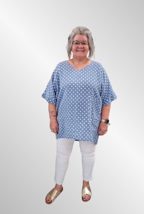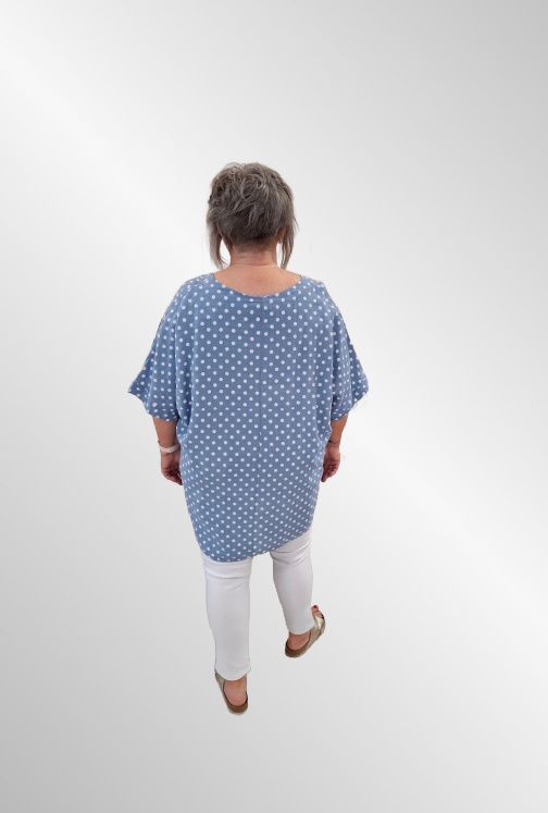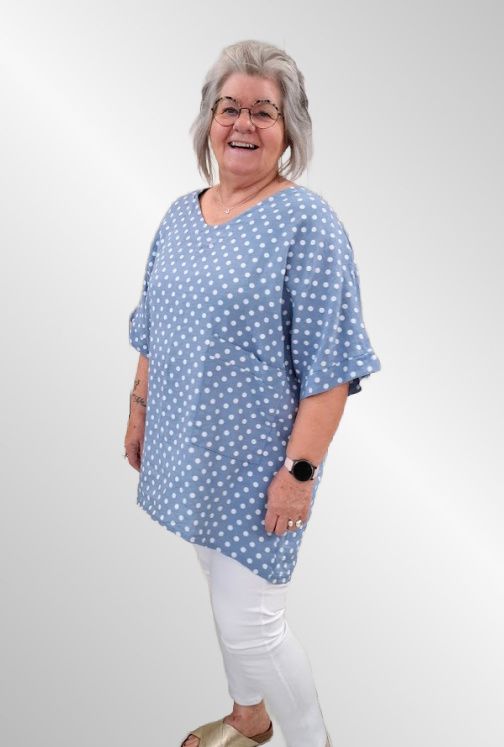 Lys blå hør tunika bluse med prikker, Happy d 21