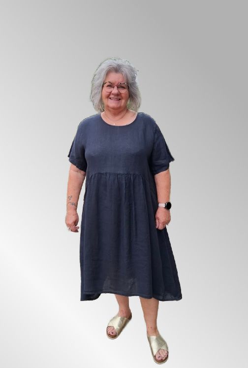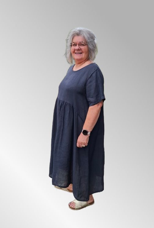 Mørk blå hørkjole, DNY 1282, Lovina