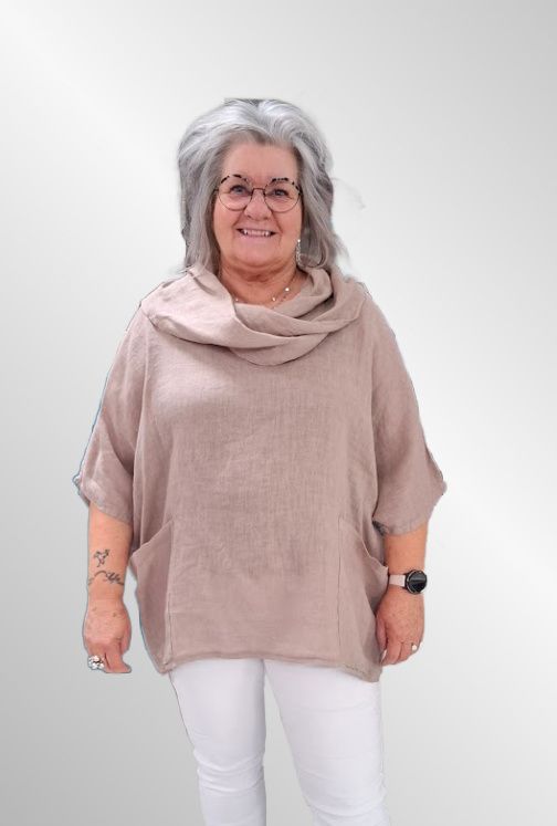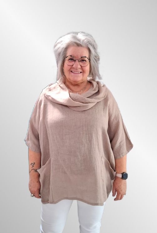 Rigtig fin og anderledes bluse i ensfarvet hør.