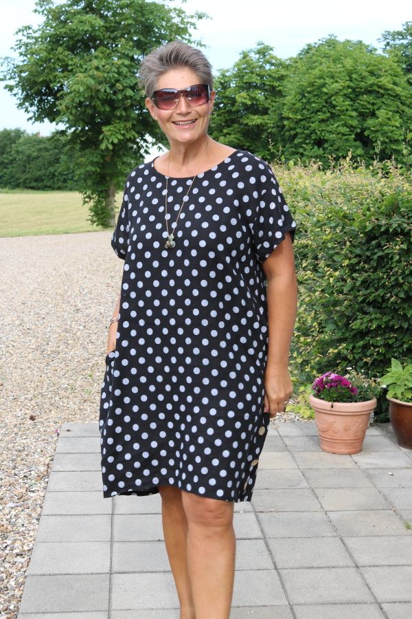 Sort prikket hørkjole, new Petrine