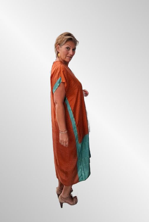 Brændt orange silke kaftan kjole, K1002
