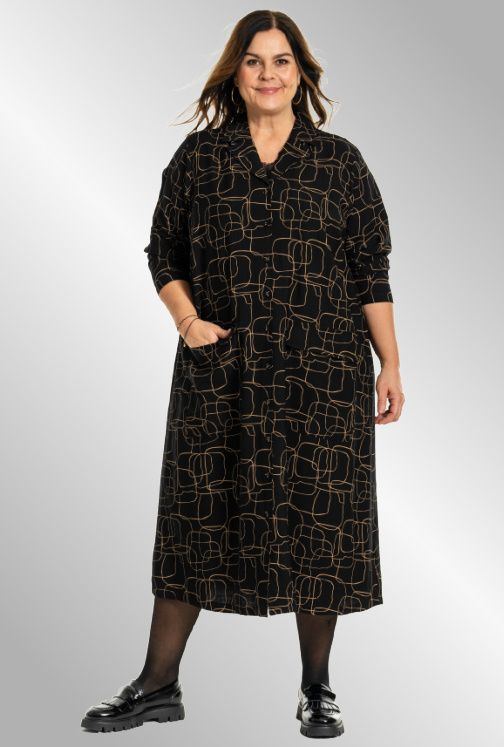 Smuk skjorte/kjole, gennemknappet, lange ærmer, lommer og med klassisk krave. Den kan bruges som kjole, men også åben som en lang cardigan / let jakke.