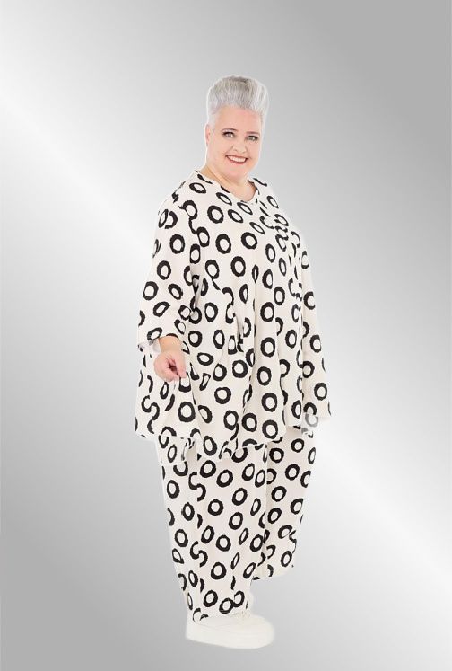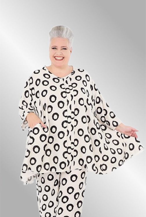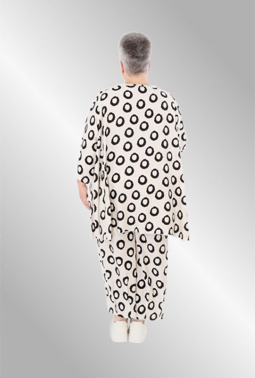 Eksklusiv og lækker bluse i smukt råhvid / sort print. A facon rund hala og 1/2 ærme