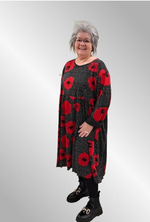 Smuk kjole fra AKH, lange ærmer og rund hals, lommer i siden, rummelig.