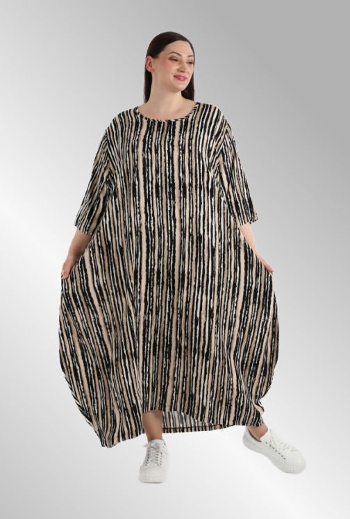 Sort/beige/råhvid stribet kjole, AKH1926 Windy
