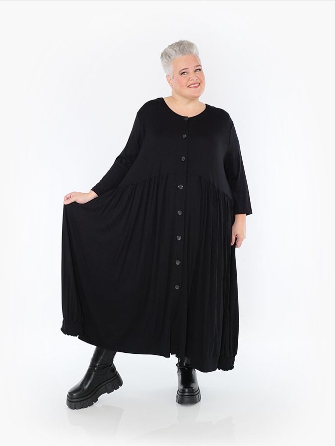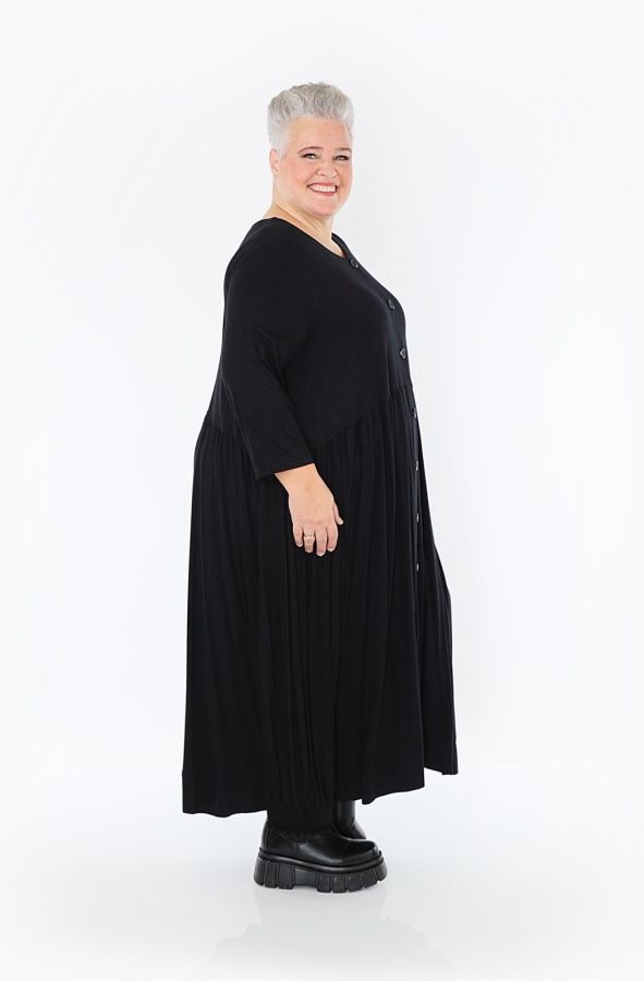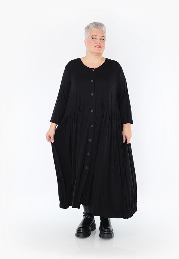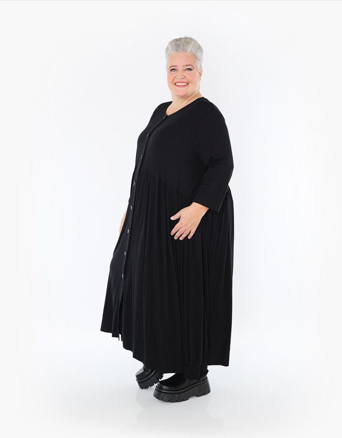 Fantastisk lækker gennemknappet jerseykjole fra AKH, Rund hals, lommer i siderne. Klassisk smuk